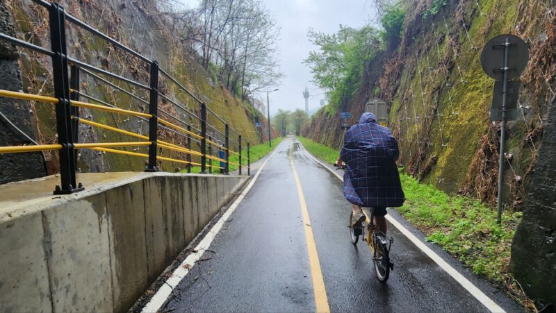 My rain cover wasn’t enough for the large puddles of rainwater. I pedaled with soaked clothes and a pond in my shoes the entire day. Luckily it was a warm day, and I could see the fog hugging the rolling hills from behind my raindrop streaked glasses. We had to do laundry that day, walking across the bridge 1 kilometer to the 24 hour self laundromat felt like an eternity. Shoes went into the shoe washer, then the shoe dryer. A bit of a misunderstanding at the next door CU.